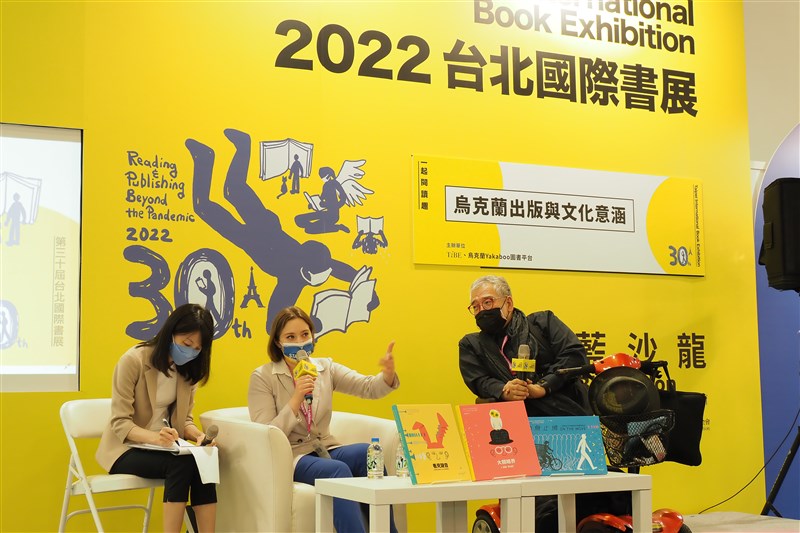 烏克蘭Yakaboo圖書平台國際事務主任華倫堤娜・布坦可(Valentina Butenko)(中),今天在台北國際書展與大塊文化董事長郝明義(右)暢談「烏克蘭出版與文化意涵」。圖/台北書展基金會提供
