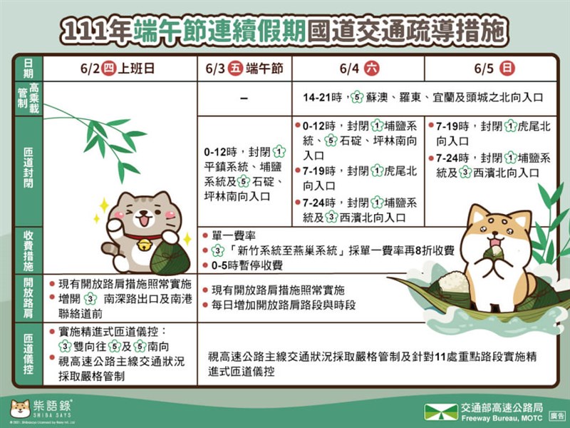 端午節連續假期國道交通疏導措施。圖/取自facebook.com/hi.freeway