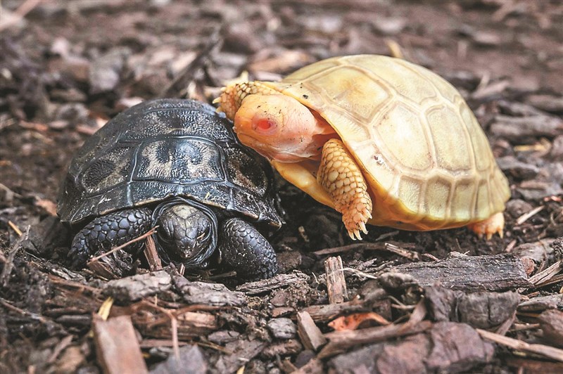 【本報綜合外電報導】法新社報導,一隻罕見的白化症加拉巴哥象龜寶寶,三日首度公開亮相。根據報導,作為保護瀕危物種計畫的一部分,二隻加拉巴哥象龜寶寶五月在瑞士西部小鎮塞爾維翁(Servion)的熱帶館(Tropiquarium)出生,其中一隻的顏色就像父母是黑色,另外一隻就是罕見的白化症,性別則還有待確定。