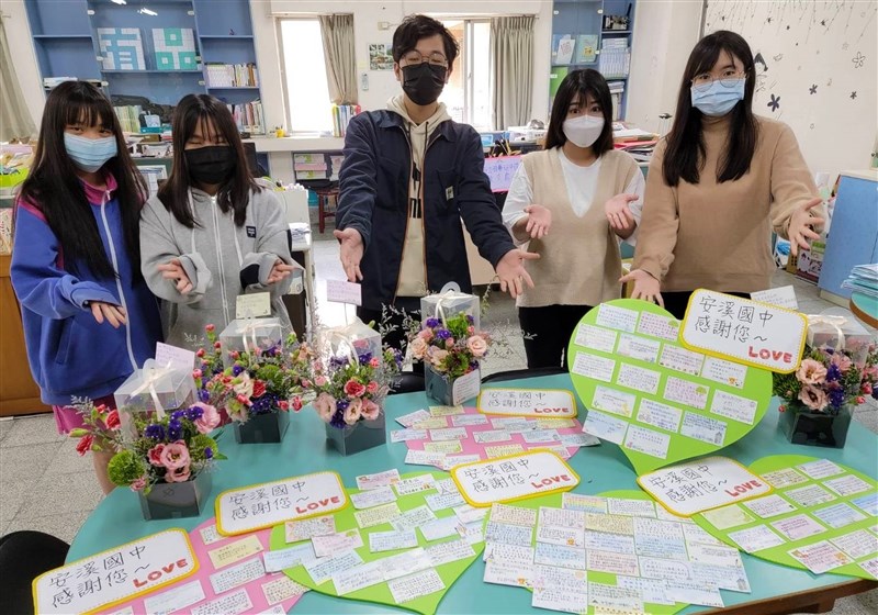 新北安溪國中帶領學生製作感謝卡及花束。圖/新北教育局提供
