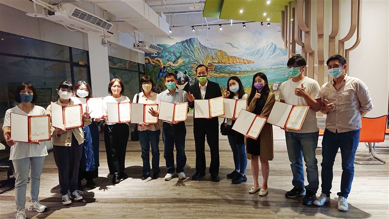 南華大學與福爾摩沙雲創基地進駐公司簽署產學合作,由林辰璋代表簽署並與十家企業合影留念。圖/南華大學