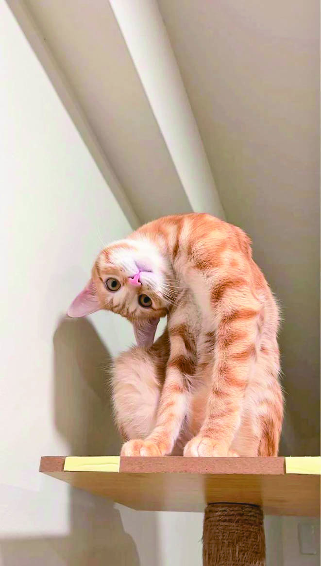 【本報綜合報導】社群網站Dcard有一名網友分享自家貓咪用「謎之角度」看世界的照片,飼主在文中表示,意外發現家裡剛收編不久的小橘貓「Norry」,超級喜歡用倒著看的方式盯著他,從幾張相片中可以看到Norry不管是躺著、坐著,甚至是睡覺時,都會將整個頭歪向一邊,幾乎快要成九十度。