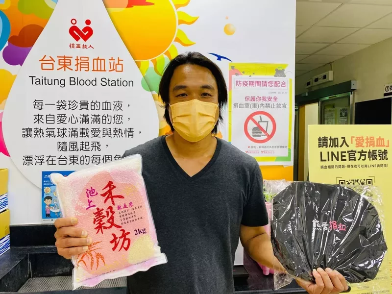 隨著疫情確診人數攀升,台東地區累計確診數逼近2萬人,直接影響民眾捐血意願。池上青農魏瑞廷獲知全國缺血後,聯繫台東捐血站,表達願贊助100包2公斤裝的池上一等米,鼓勵民眾踴躍捐血。
