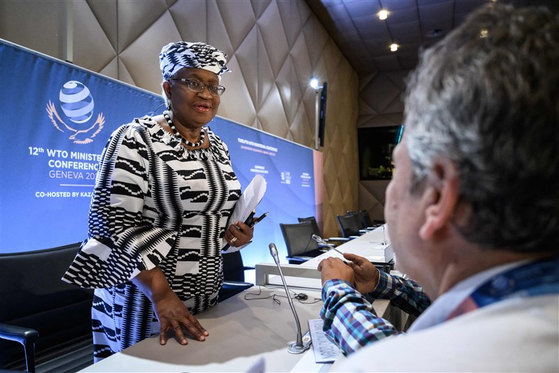 日內瓦舉行為期4天的世貿組織部長級會議,包括全球糧食安全、過度捕撈和公平獲得Covid-19疫苗等問題。圖為WTO總幹事Ngozi Okonjo-Iweala 。圖/法新社