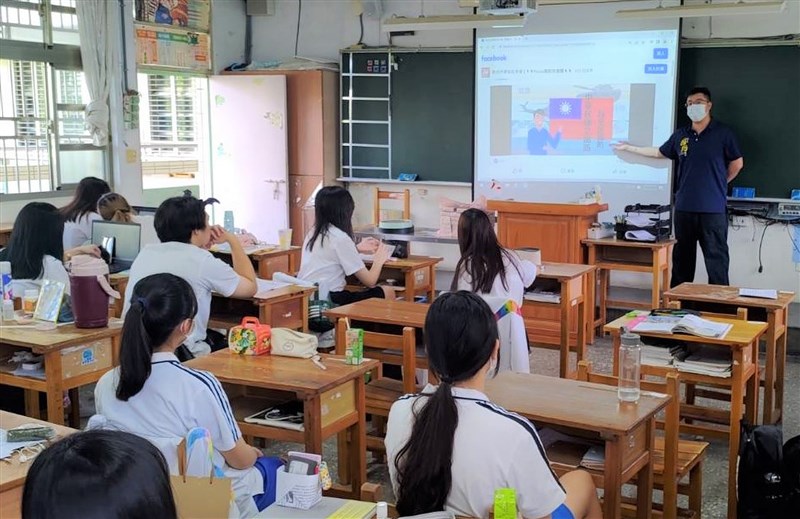 樹林高中全民國防教師陳育聰進行全民國防教育課程。圖/新北教育局提供
