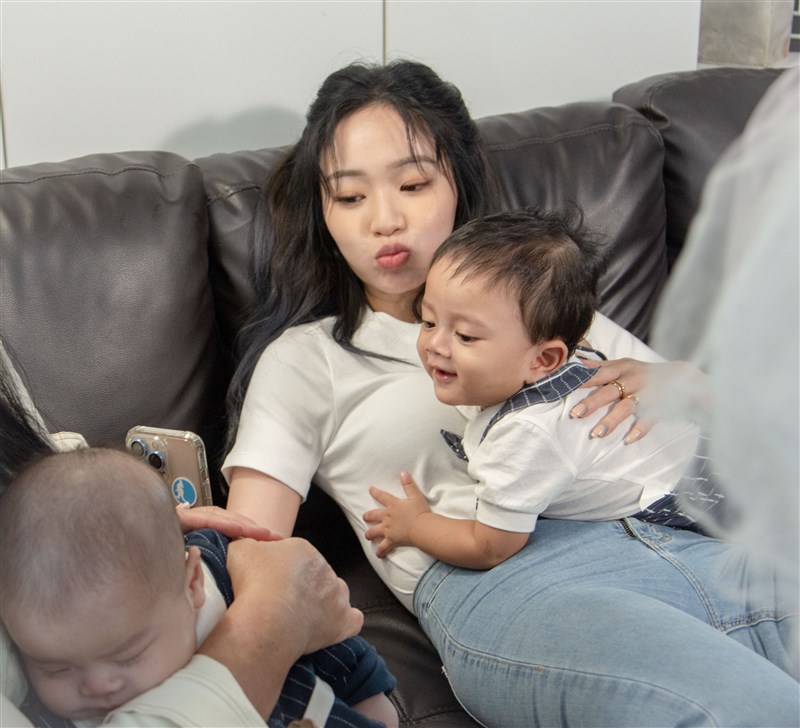 Kimberley擔任兒童公益大使,拍攝影像時懷中的幼兒忽然睡著,甜美的笑容讓她直呼可愛。圖/關愛基金會提供