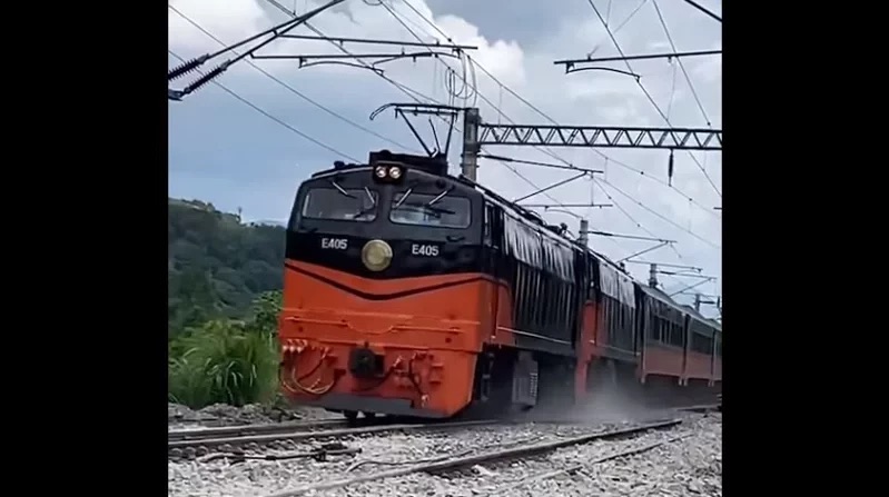 台鐵頂級觀光列車「鳴日號」於11日行經台東線南平到萬榮間路段時,被民眾拍下列車劇烈抖動、輪子甚至騰空飛起的畫面,運安會也將著手調查。圖/翻攝自臉書台灣便當管理局-附屬鐵路部
