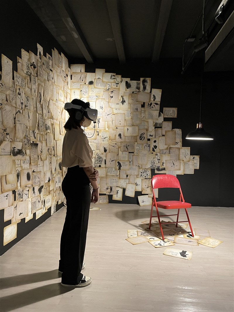 泰國觀眾聚精會神的體驗台灣VR作品「留給未來的殘影」。圖/文化部提供