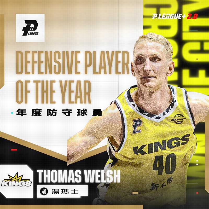 【記者張哲郢綜合報導】P.League今天公布年度最佳防守球員以及防守第一隊,由新北國王「小火車」湯瑪士(Thomsa Welsh)獲得最佳防守球員肯定,防守第一隊陣容中,也以國王入選2人為最多。