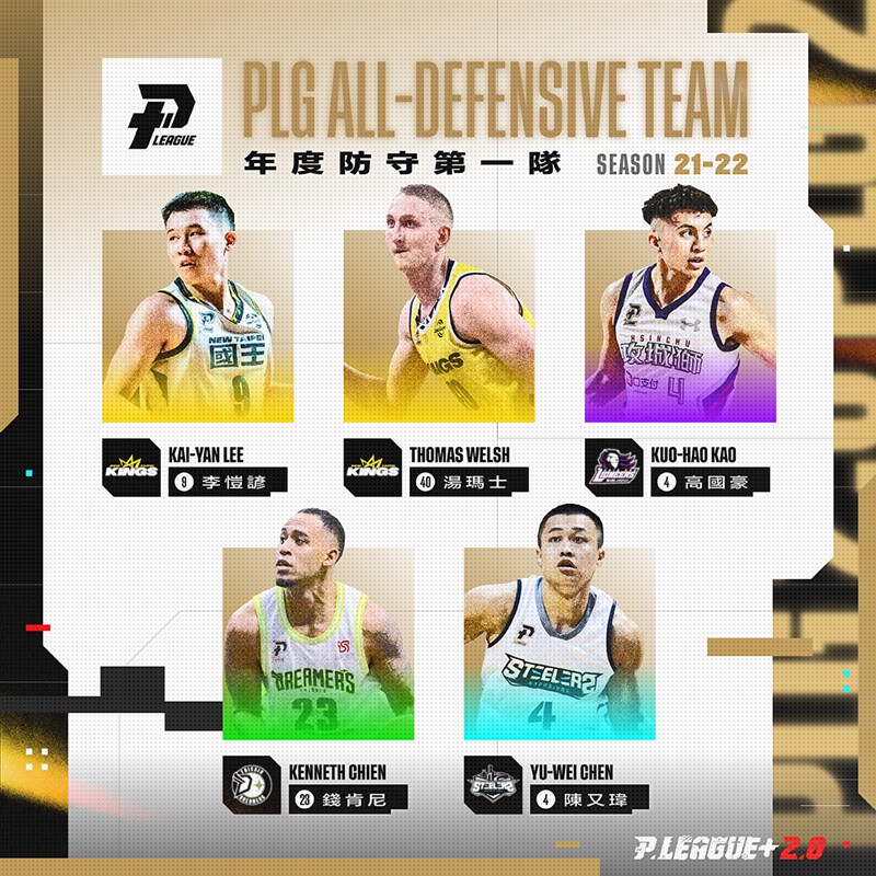 聯盟也一併公布防守第一隊陣容,除湯瑪士自動獲選外,還包括隊友李愷諺以及新竹街口攻城獅高國豪、福爾摩沙台新夢想家錢肯尼以及高雄鋼鐵人陳又瑋,其中高國豪連2年獲選防守第一隊,身為聯盟抄截王的李愷諺也榜上有名。