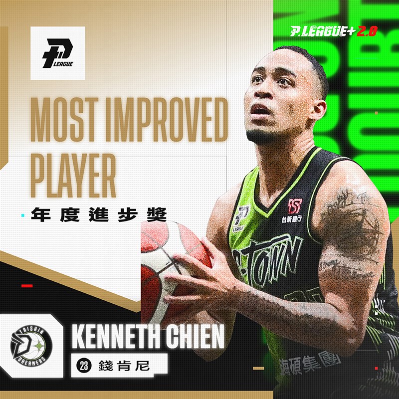 【記者張哲郢綜合報導】P.League今天公布年度進步獎得主,由先前入選年度防守第一隊的福爾摩沙台新夢想家前鋒錢肯尼所拿下,成為聯盟首位進步獎得主。