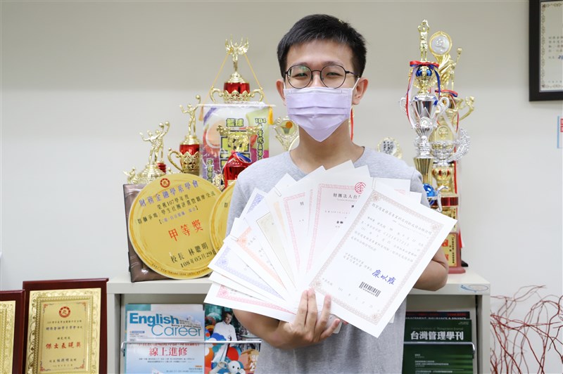 南華大學財金系應屆畢業生陳柏豪一年內考取十張證照,榮登系上證照王。圖/南華大學