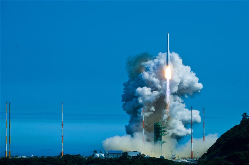 由韓國自主研製的運載火箭世界號(KSLV-II)曾因天候等問題推遲發射,今天進行第2次發射即成功。圖/韓國航空宇宙研究院提供