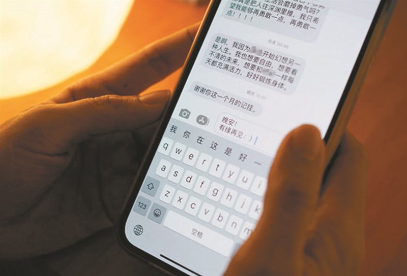 玖妹說,晚安簡訊每則人民幣一元,顧客可選擇一周、一個月、一年的服務,且晚安簡訊不是單純發送「晚安」二字,她會想像一段有溫度的對話,有時會聊天,但從不會過問個人隱私。