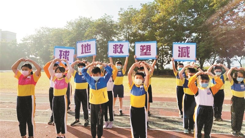19所學校連5年獲選三好校園實踐學校,成為典範;圖為高雄市中崙國小推動減塑。圖/嘉華高中、中崙國小提供