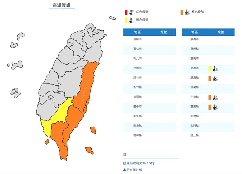 中央氣象局發布高溫資訊。圖/取自氣象局網站