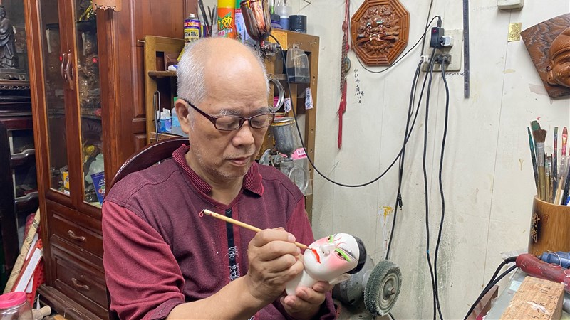 許金棒從小跟著父親學習雕刻偶頭,至今已逾數十載歲月。圖/文化局提供