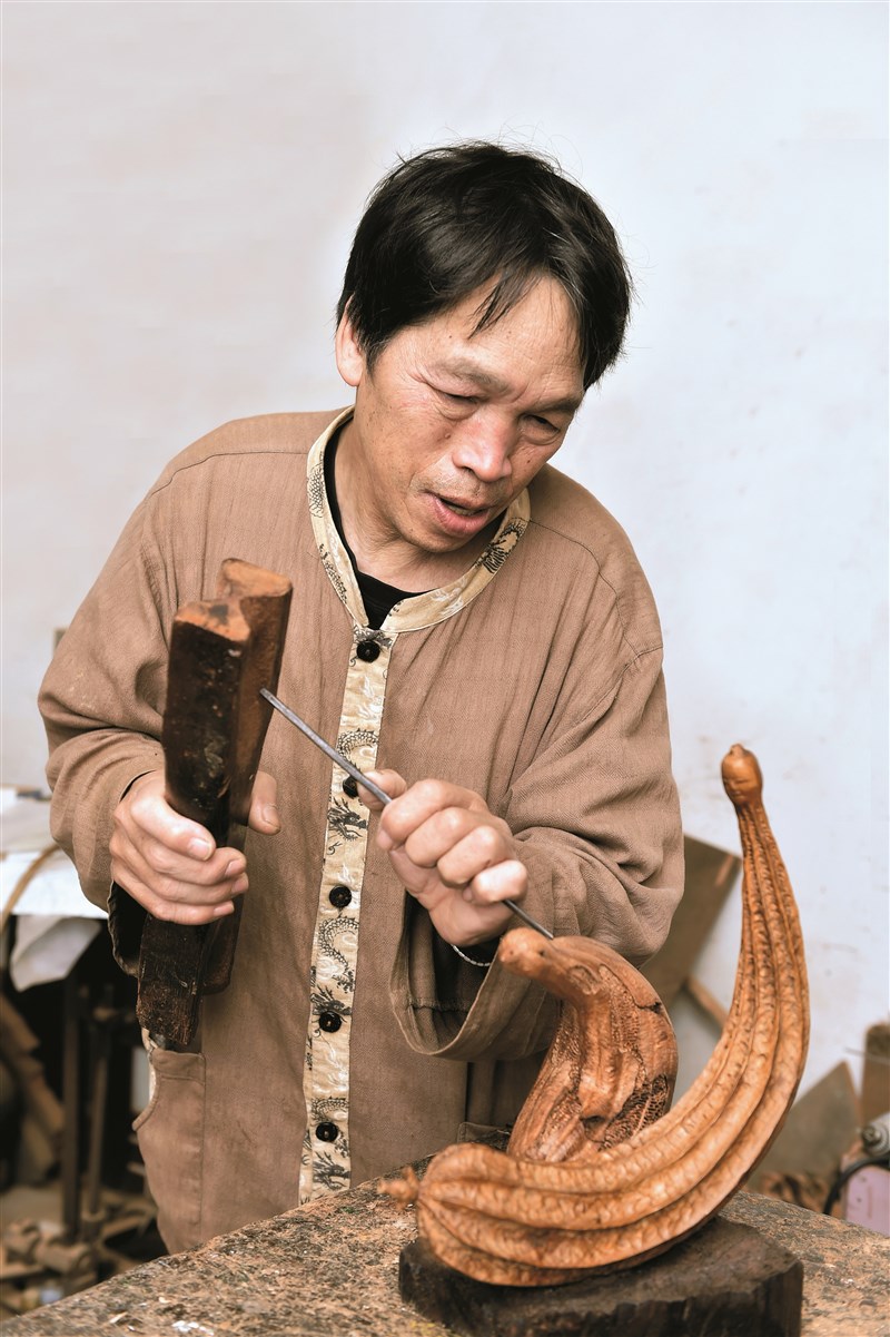 從事木雕工作已逾半世紀的知名藝術家黃媽慶,則是從十四歲起開始向泉州木雕司阜王錦宣拜師學藝、學習木器雕刻的基本功,後來轉至合記外銷日本欄間工藝擔任鑿花師傅,擅長廟宇木雕及家用木雕創作的他,藉由一刀一鑿的過程雕刻出栩栩如生的花草樹木,高超工藝讓他獲獎連連。