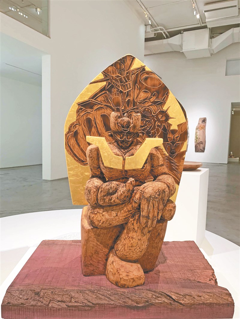 卡漫英雄變神祇 呈現衝突美感 曹麗蕙 |2022.06.27 語音朗讀 1192觀看次 字級 大 中 小 楊茂林將《星際大戰》的智者尤達,結合阿彌陀佛手印,創作〈北方無量光的尤達佛〉。圖/記者曹麗蕙楊茂林作品〈思維的無敵金剛〉。 圖/記者曹麗蕙楊茂林的「花落春未盡」系列,有許多雲豹與百合的創作。 【記者曹麗蕙台北報導】威武的神獸台灣雲豹與聖潔柔美的百合,衝突又合諧地並置在原木載體上;電影《星際大戰》中的智者尤達雕塑,打著阿彌陀佛的手印。這些都是藝術家楊茂林在「蒐懷志」個展中的全新創作,他說:「藝術家就是要思考如何把兩者意念、形象上衝突的美感擺在一起,創作出協調的作品。」一九五三年出生於彰化的楊茂林,作品形式橫跨繪畫、裝置與雕塑等,「年輕時常參與社會運動,用創作反映時代脈動,但到了一個年紀,開始由外往內探尋,回到自己內心」。尋找曼荼羅 延伸3主軸「尋找曼荼羅」便是近十年他賦予自己的創作命題,「曼荼羅本是神佛住所,意喻真理所在」,他由此尋找生命本質、自剖個性,延伸出三大創作主軸:「黯黑的放浪者」、「花落春未盡」、「瀲灩之魂」,對照著他的人格特質。這兩年,他更開展在原木材料上畫油畫的新探險,「木頭的軟硬度、含油量、木紋、造型都不同,且是立體的,有一些還有破洞、缺陷,如何利用它們變成創作的美感,成為我的新課題」。他的〈花落春未盡.雲豹與百合〉即代表作品之一,楊茂林說:「台灣雲豹是威武有力的神獸,台灣百合洋溢聖潔浪漫,兩者擺在一起會覺得唐突、有火花。」他不僅協調融合兩者衝突的美感,還賦予象徵台灣的深刻意涵。另外,楊茂林最讓人眼睛一亮的系列作品為卡漫神祇立體雕塑,他表示:「我自小就愛看漫畫,卡漫與電影英雄角色,都是拯救地球、維護宇宙和世界和平,其實就某些意義上,他們就像孩子心中的神佛,無私無悔犧牲自己保護世人。」卡漫神格化 創作懷敬意他將大眾化的卡漫人物神格化,與莊嚴神聖的神佛造型結合,作品〈北方無量光的尤達佛〉就可見到《星際大戰》的智者尤達打著阿彌陀佛手印,尤為特別的是,楊茂林不只有雕塑,背光還呈現如本生傳的概念,以版畫記繪尤達的故事;〈騎盤古大蟾蜍的風暴白武天〉則將《星際大戰》中的白武士,融入隋唐時代的佛教護法天王造型。此外,鐵人二十八曾被改編推出《太陽的使者》動畫,楊茂林也將他和大日如來結合,創作出〈大日鐵如來〉,除了手印之外,背光則畫上太陽系星球,呈現古時宇宙觀。從小在佛教家庭長大的楊茂林分享,「我並非揶揄、批判,而是以尊敬角度,將小時英雄和莊嚴的神佛結合」,他表示,希望能透過創作,盼能讓年輕人覺得親切,藉此更容易親近、認識神佛。「蒐懷志:二○二二楊茂林個展」即日起至七月十六日在台北耿畫廊展出,涵蓋「花落春未盡」、「黯黑的放浪者」與卡漫神祇立體雕塑系列,共四十多幅作品。 前一篇文章 簡訊 下一篇文章 風神寶寶新劇 街舞加戲曲唱給你聽 熱門新聞 01佛光會參與COP30 推廣環保與心保2025.11.1302法華禪寺皈依典禮 佛子開啟修行旅程2025.11.1303新馬寺大專佛學生活營 學習生活中覺有情2025.11.1304球星陳傑憲出書 盼助人跨過低潮2025.11.1305璀璨燈光 映照千年運河2025.11.1306【相守一輩子】 學習向另一半求助2025.11.1307土耳其運輸機墜毀 20軍人罹難2025.11.1308習近平會西班牙國王 盼成戰略夥伴2025.11.1309【觀我望己】追日,散策旅程 (下)2025.11.1310健力世錦賽 中華隊再奪3金2025.11.13 訂閱電子報 台北市 天氣預報 台灣一週天氣預報 相關報導 出道40年首獲小金人 阿湯哥 獲奧斯卡終身成就獎中職林安可 可望加盟日職西武北市新聞記者公會 深化兩岸新聞交流中華隊第8金 健力世錦賽 楊森包辦1金1銀1銅南華大學 獲卓越經營品質標竿獎克林姆富家女肖像畫 估值46億元 作者其他文章歲末傳愛關懷弱勢 謝祖武任公益大使日本奇想 高雄限定蔬食人物誌、94素Podcast 精采首發時尚老人捐設備 點亮逆風少年舞台夢台北雙年展 思慕為橋連結世界金漫獎 黃健和獲特別貢獻獎