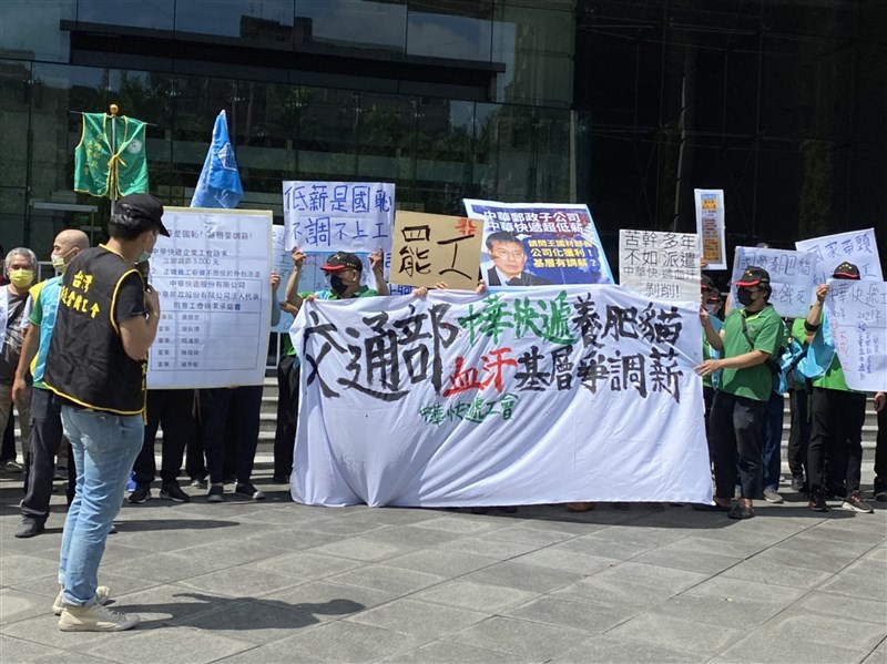 中華快遞工會今罷工 基層:生活過不下去! |2022.07.04 語音朗讀 501觀看次 字級 大 中 小 以運送銀行票據為主的中華快遞工會4日起北北基桃地區發動罷工,盼能立刻加薪新台幣5000元等。圖/中央社 【本報台北訊】中華快遞企業工會宣告自今(4日)上午5時30分起,對中華快遞公司發起第一波罷工行動,工會今天上午到交通部前舉辦記者會,訴求全面加薪5000元,一度想闖入交通部,現場氣氛火爆;中華快遞董事長黃振忠表示,會收集意見並回去討論。中華快遞企業工會宣布,今天上午5時30分起,對中華快遞公司發起第一波罷工行動,由台北辦事處、桃園辦事處、新竹辦事處以及派駐宜蘭會員發動罷工。將依抗爭情勢與協商進度調整罷工行動,如中華快遞公司不能給予讓會員滿意的調薪方案,不排除提高抗爭層級,台中、台南、高雄辦事處會員將跟進發動全台總罷工。中華快遞工會罷工要求全面加薪5000元。圖/中央社工會表示,中華快遞是中華郵政的子公司,連年獲利,上繳中華郵政公司現金股利數千萬,但中華快遞的員工薪資十幾年來都落在基本工資邊緣,血汗基層都快活不下去,忍無可忍,只能發動罷工。工會表示,109年11月13日與中華快遞公司召開勞資爭議調解,爭取調薪,調解結果為不成立,後來工會召開記者會抗議、數次內部協商,公司均稱須經過董事會同意,從來沒有給過具體合理的調薪方案。工會提出三大訴求,正職員工薪資要高於外包派遣、全面調薪5000元、薪資結構參考郵政母公司。圖/中央社中華快遞董事長黃振忠出面接受陳情時表示,薪資調幅確實不高,但調薪有法定程序,會針對工會的訴求收集相關意見,並召開董事會朝工會建議方向研議。黃振忠表示,中華快遞業務與金融產業相關,罷工會讓員工受傷害,也影響銀行資金調度,對銀行感到很抱歉,希望工會停止罷工,否則銀行可能對中華快遞產生不信任感,相關影響難以評估。 前一篇文章 MiLB/林子偉復健賽開轟 劉致榮持續低潮 下一篇文章 PLG/首位亞洲外籍球員 里維羅曾來台打佛光杯 熱門新聞 01動物的精采瞬間(下)2026.02.2202房市冷 仲介業跨足都更危老整合2026.02.2103朝山叩鐘 佛光山嶄新大雄寶殿迎春 2026.02.2104佛光山平安燈會 逾百萬人朝聖2026.02.2305光照大千璀璨登場 點亮和諧共生新希望2026.02.2106Q版初代超人力霸王 領航愛河灣2026.02.2107台北道場 新春禮千佛2026.02.2108【詩】紅豆控的紅龜粿2026.02.2309陸AI機器人秀功夫 驚豔全球2026.02.2110南投燈會 佛光山鳳凰主燈傳送光明2026.02.21 訂閱電子報 台北市 天氣預報 台灣一週天氣預報 相關報導 春節海運日均1.8萬人次 成長10%韓:總統願赴立院國情報告金門機場候補數百人 軍機連2天疏運七股科技工業區 招商有成春節連假 海軍維安總統登小雪山拜年 談話聚焦國防經濟