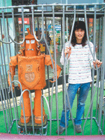 留著一頭捲髮的藝術家萬仁盛更是特別,他的攤位「流浪皮箱」全都是利用皮革所做的創意展現,有皮革鏡、皮機器人、皮帶等。他說,「只是市面上有的,他一概不做」,所以他的作品絕對是原創。