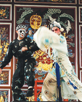另一齣「水漫金山寺」,是「白蛇傳」最精彩的一折,激烈的翻滾、打鬥動作,兵器在空中飛舞接招,技巧高難度,讓遊客目不暇給。
