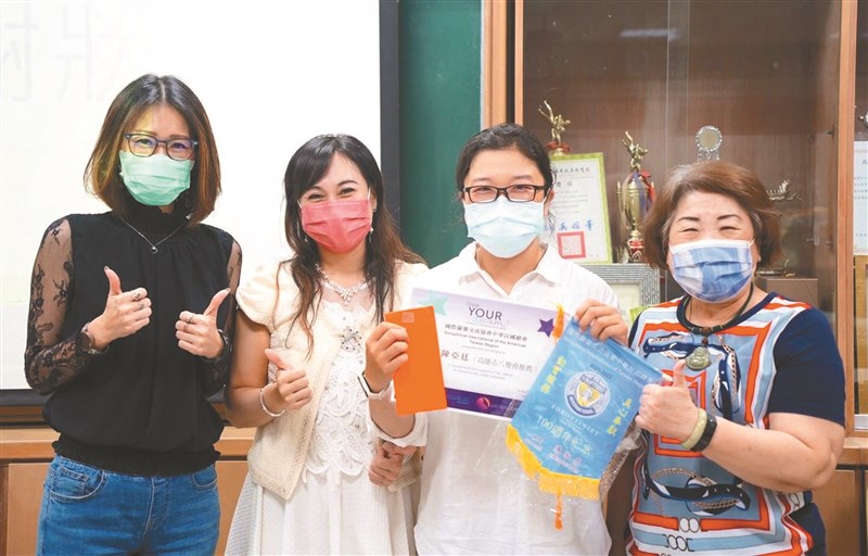 照服員陳亞婷(右二)自小失學,在工作穩定後重拾課業,立志要讀大學當社工,幫助更多弱勢。