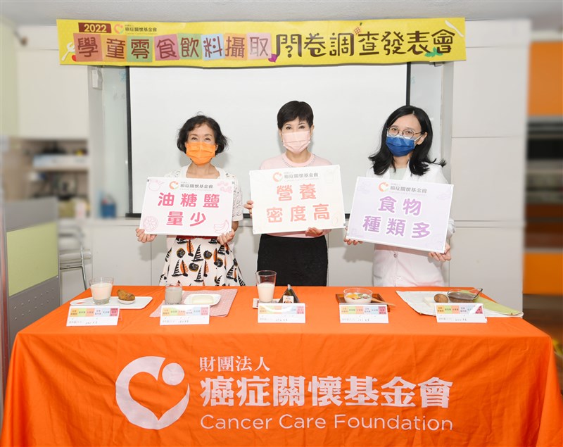 癌症關懷基金會董事長陳月卿(中)、執行長黃翠華(左)與營養師楊川瑩(右)共同提醒家長,應注意學童的「情緒性進食」與「食物上癮」問題,以營養密度高的健康點心,取代高熱量零食 。圖/癌症關懷基金會提供
