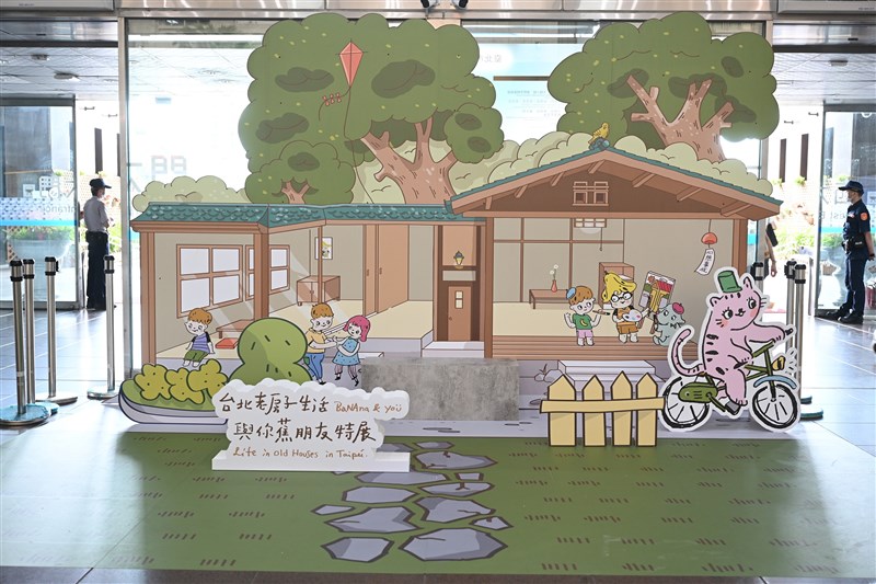 台北市政府西大門也打造了限定的「BaNAna阿蕉•老房子」插畫主題打卡拍照區,讓大家一起感受老房子生活情調。圖/台北市觀傳局提供