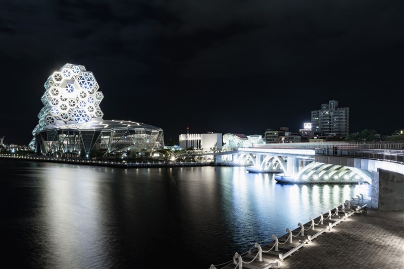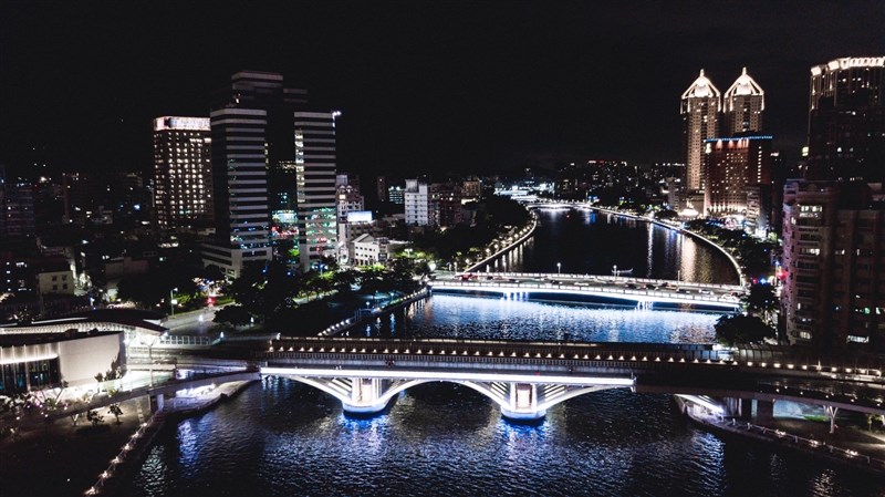 追悼前日本首相安倍,高雄市愛河以象徵聖潔、和平的白光感念追思。圖 / 高市府提供