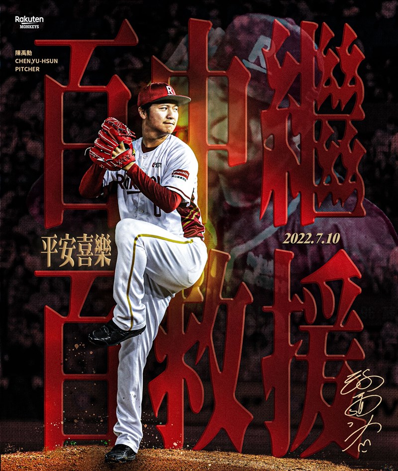 陳禹勳達標百中繼同時,也創下偉大紀錄,他成為聯盟首名累積百救援、百中繼的選手。