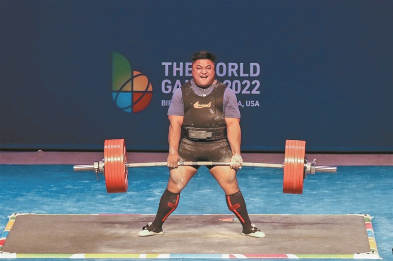 楊森在伯明罕世運健力項目超重量級摘銀,圖為硬舉。圖/中央社