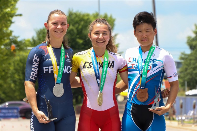 伯明罕世運陳映竹選手(右)獲得滑輪溜冰女子公路單圈爭先賽銅牌。圖/體育署提供