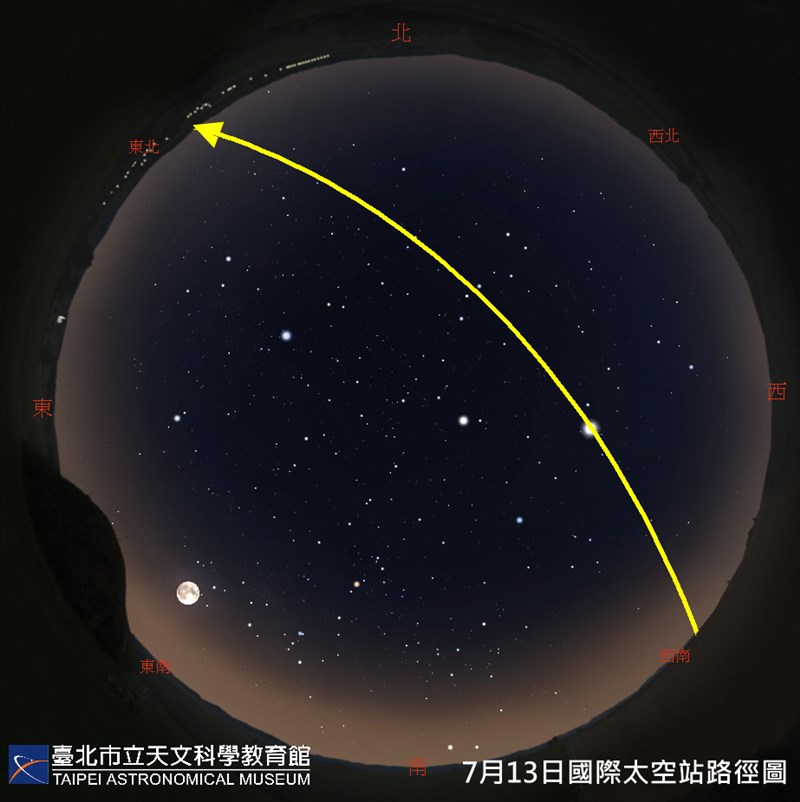 7月13日國際太空站路徑圖。圖/北市天文館提供