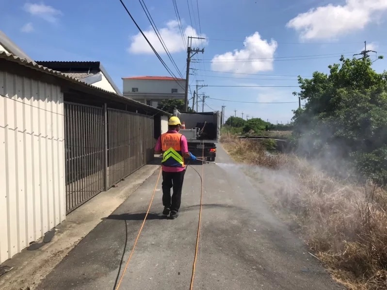 國內今年已有七例日本腦炎個案,地方衛生單位派員進行環境清消。圖/衛生局提供