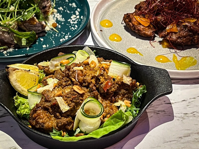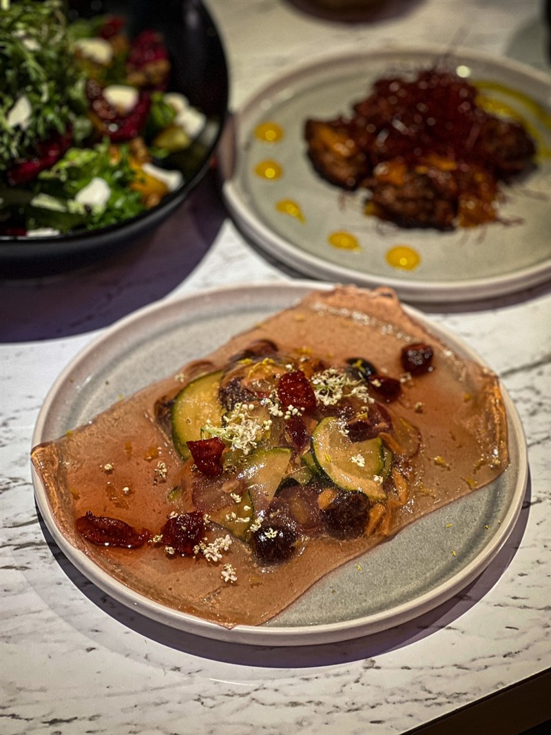 蔬慕餐廳上新菜 水果入菜爽口又消暑 楊旻芳 |2022.07.17 語音朗讀 1575觀看次 字級 大 中 小 圖/記者楊旻芳 【記者楊旻芳台北報導】善菓集團旗下的蔬食餐廳「Vegan Amore蔬慕」,本月21日即將正式推出新菜單,13道新菜色融入各式水果,讓炎熱的夏天帶來清爽的味蕾感受。歡慶新菜單推出,7月20前到蔬慕消費滿500元就可以任選一樣新菜,由蔬慕請客。圖/Vegan Amore蔬慕提供圖/Vegan Amore蔬慕提供這次推出的新菜以前菜居多,並且全系列都「無蛋奶、無五辛」,各種飲食習慣的民眾皆能安心享用,善菓集團品牌總監朱安廷Andy表示,雖然蔬慕有使用五辛入菜,不過台灣還是以「宗教素」不吃五辛的民眾為大宗,因此本次推出的新菜都不使用五辛,改用芥末、香料來提升香氣。朱安廷表示,蔬慕的菜單以前菜非常受歡迎,因此這次一口氣推出6道新品,並以多種不同元素創意搭配,加入水果入菜,吃起來具有豐富的層次風味。前菜有芝麻葉白醬莓果裸麥沙拉、蜜蘋果優格水果沙拉、葡萄草莓蘋果凍、水蜜桃芒果炸雞、青花椒綠咖哩百頁、花生糖甘藍蜜地瓜、檸檬沙嗲炸雞。葡萄草莓蘋果凍。圖/記者楊旻芳葡萄草莓蘋果凍是一道結合美學跟創意的前菜,加入節瓜、莓果、杏仁,果凍等食材,以蘋果跟草莓做調味並做成果凍狀,不用沾醬料就可以將調味跟著果凍搭配蔬菜一起吃下肚,吃法超有創意。青花椒綠咖哩百頁。圖/記者楊旻芳青花椒綠咖哩百頁則是以百頁豆腐為基底,加入椰奶、綠咖哩以及秘製的青花椒油香氣十足,上方則灑上紫色豆芽做點綴,吃起來有3種風味不同層次感,菜單上畫有一個打雷的符號非常有趣,朱安廷說,因為想呈現這道菜吃起來會帶有一種麻麻的感覺,但不會辣,只有花椒香氣帶點麻,所以用打雷的符號來呈現。水蜜桃芒果炸雞。圖/記者楊旻芳水蜜桃芒果炸雞是一道具有衝突感的餐點,新豬肉做的純素炸雞塊搭配芒果醬跟水蜜桃醬,衝突感的味覺、前所未有的特殊滋味,讓人不知不覺一口接著一口。花生糖甘藍蜜地瓜。圖/記者楊旻芳花生糖甘藍蜜地瓜有節瓜麵、地瓜、羽衣甘藍、花生糖組成,組成一道前菜,加入以芥末特製醬料,每種食材看似特別,組合起來卻能蹦出奇特的新滋味。芝麻葉白醬莓果裸麥沙拉。圖/記者楊旻芳芝麻葉白醬莓果裸麥沙拉,使用香烤過的自製麵包搭配自製白醬,淋上純素起司跟自製的柑橘軟糖,加入芝麻葉增加風味。蜜蘋果優格水果沙拉。圖/記者楊旻芳蜜蘋果優格水果沙拉,是使用豆漿為基底調製的純素優格醬,加入蜜蘋果增添香氣,搭配各式蔬菜水果,新鮮好吃又清爽。朱安廷說,純素炸雞塊在蔬慕非常熱賣,這次將雞塊跟許多道餐點做搭配,雖然都是雞塊但用不同料理方式吃起來口感也稍微不同,炸雞粿上沙嗲醬再加入檸檬,口感較為溼潤鬆軟的感覺,變成一道具有異國風味版的「混血炸雞」。檸檬沙嗲炸雞。圖/記者楊旻芳這次新菜單只有一道主菜「番茄苳蔭燉飯」,以台灣人熟悉的口味製作台版風味,不會過酸過辣,帶有東南亞苳蔭風味,米飯選用義大利米,口味Q彈帶有嚼勁不軟爛,也是一道東西合併的特色料理。番茄苳蔭燉飯。圖/記者楊旻芳朱安廷說,本次的新菜單所有的食材都是由蔬慕自行調味製作,都不是使用現成的醬料,費心費力,希望能帶給民眾用心的料理,富有特色的調味。甜品新增現代人非常喜歡的肉桂捲,上面擺一顆香濃的百香果雪酪冰淇淋,喜歡肉桂香氣的可以單吃肉桂捲,也可以搭配百香果雪酪一起享用,還有自行熬煮的蘋果醬,一道餐點3種吃法。冰淇淋肉桂捲。圖/記者楊旻芳飲品部分推出粉紅葡萄柚冰咖啡、蜜蘋果烏龍氣泡飲、香蕉燕麥冰拿鐵、酸漬櫻桃冰咖啡,其中「酸漬櫻桃冰咖啡」是以蛋糕做為啟發,上面的鮮奶油是以2款純植鮮奶油調製,濃郁好吃,跟咖啡一起喝變成香濃的拿鐵風味。7月20日前只要到蔬慕消費500元就可以任選一樣新菜,由蔬慕請客,千萬別錯過這個好康的機會唷!Vegan Amore蔬慕 蔬食地圖電話|02-25556090地址|台北市大同區承德路一段1號(京站時尚廣場3樓) 前一篇文章 中職/以為自己不是女兒控 魏碩成錯了 下一篇文章 中職/如何跟本土打成一片 福來喜:母湯閉俗 熱門新聞 01南華大學茶禪雅集 靜坐書寫時光膠囊2026.03.2602星雲大師靈骨分燈歐洲 傳燈萬方2026.03.2603佛光山365日越文版 贈西貢日航大酒店2026.03.2704紅綠葡萄抗氧化抗發炎 連皮吃獲取健康全效益2026.03.2705台灣工藝3專書 呈現文化獨特樣貌2026.03.2706中職37年 明大巨蛋開幕戰2026.03.2707兒童節禮物 新北學生自己票選2026.03.2608北京中學老師 精準預言美伊開戰2026.03.2609全球首例 菲國進入能源緊急狀態2026.03.2610滑雪勝地轉型 數位遊牧族進駐2026.03.26 訂閱電子報 台北市 天氣預報 台灣一週天氣預報 相關報導 景氣分數衝高 燈號連3紅8萬小草力挺 柯:我不投降 718億新興計畫預算 政院不動 能源漲價 央行逐季檢視通膨京華城案 柯文哲重判17年台東實彈操演 美技術人員在場 作者其他文章素食需求增2成 台北君悅飯店茶苑供蔬食餐點無心插柳柳成蔭 樸城草食打造植物系美式蔬食店疫情後吃健康 台北凱撒大飯店Checkers轉型蔬食吃到飽餐廳