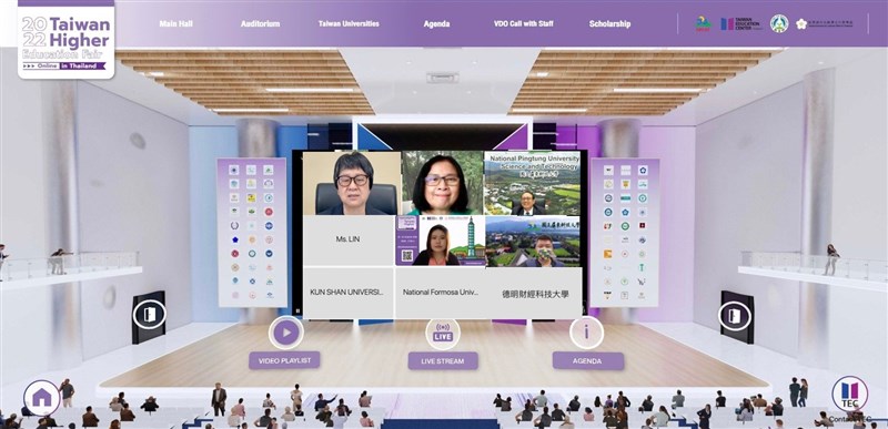 教育部表示,2022年泰國台灣高教暨華語線上教育展自7月18日至22日以虛擬實境平台進行,規劃大學校院特色專區,並安排即時問答和泰籍學長姐經驗分享,學生可透過電腦或智慧型手機瀏覽,或於各校專區留言交流,會有專人以英文、泰文回覆,預期教育展累計點閱數可突破3萬人次。