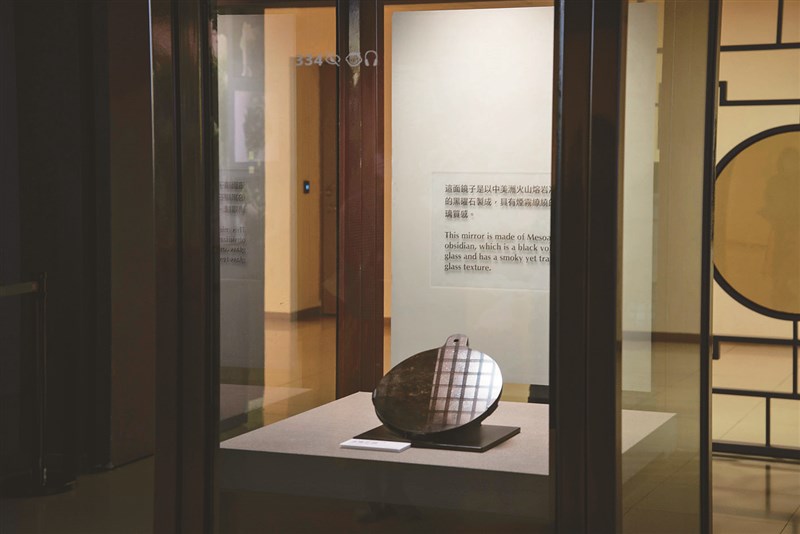 來自四百多年前中美洲阿茲特克帝國的黑曜石鏡,今起在故宮北部院區展出。圖/中央社