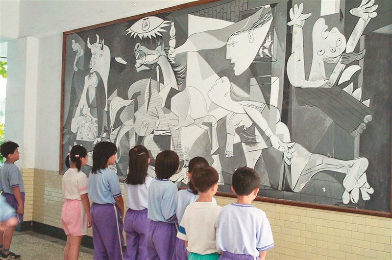 朱國良臨摹畢卡索〈格爾尼卡〉等名畫,培養學生藝術鑑賞能力。圖/朱國良提供