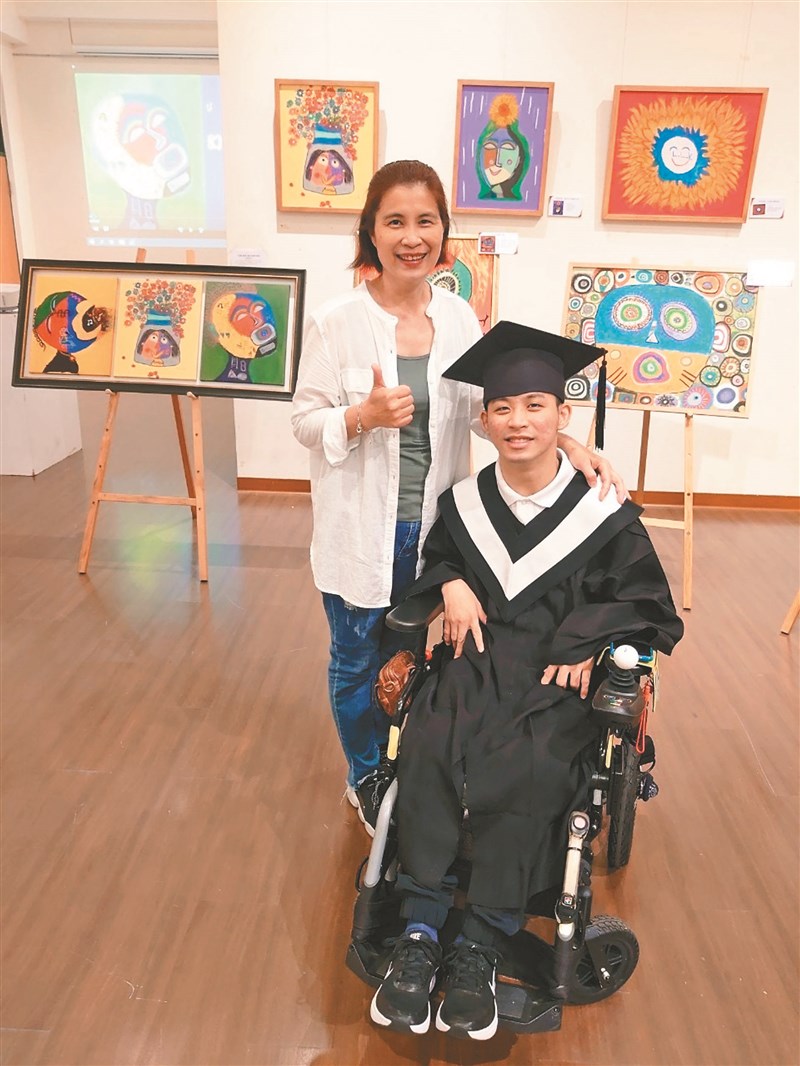 腦麻生劉立凱畢業,感謝媽媽(左)四年全程陪伴。圖/陳苡葳