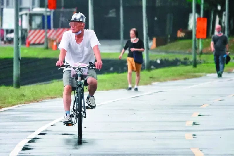 防疫指揮中心放寬防疫規定,戶外運動可以不強制戴口罩,騎機車與腳踏車容易辨認,但是散步難以界定。圖/林俊良