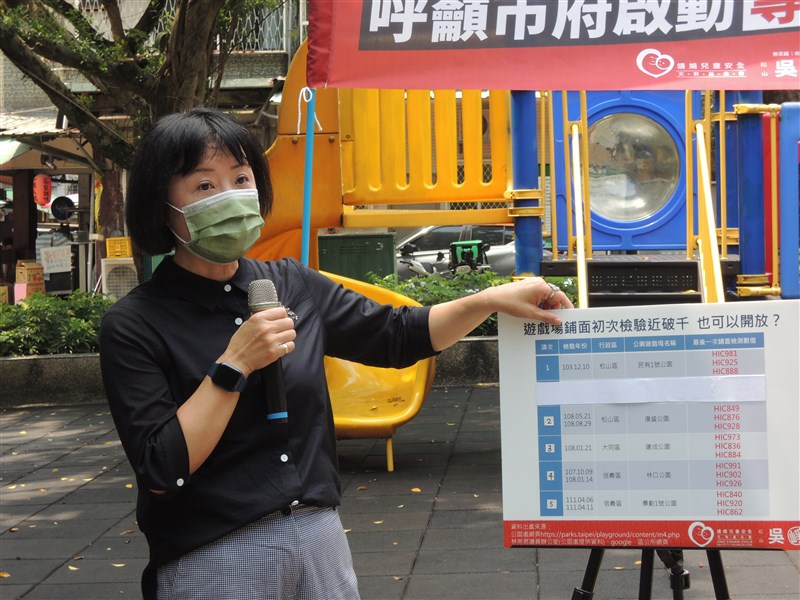 近5年媒體報導,公園遊戲場事故就造成26名孩子輕重傷,而106年1月25日起,中央訂定《兒童遊戲場設施安全管理規範》,依法遊戲場除第一次開放前要檢驗,接續每3年仍須重新檢驗一次,但北市440座遊戲場逾期未檢驗座數為163座,實際檢驗率僅65.3%,批政府公然違法。