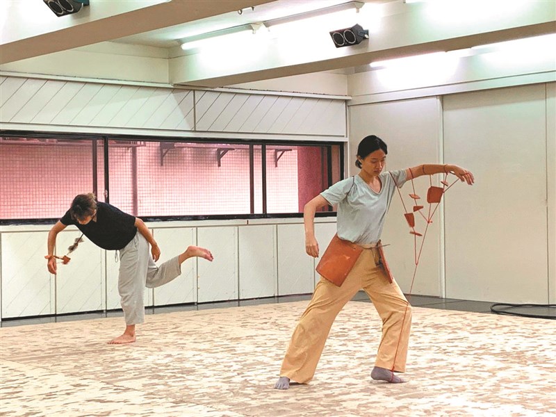 舞者找到宜蘭廟宇的磚瓦,穿戴在身上,試著邊跳舞邊發出聲響。圖/記者曹麗蕙