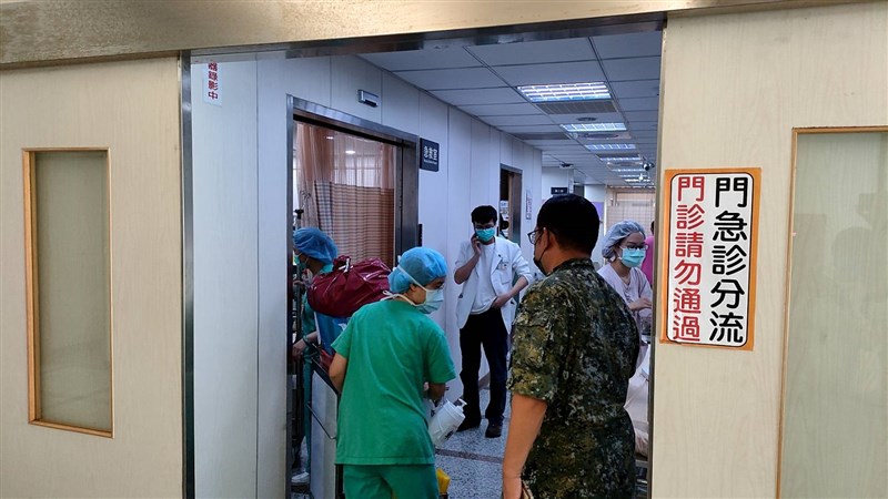 19歲全姓士兵前胸、後背都壓傷,院方裝上葉克膜搶救,全姓士兵的家屬將趕往醫院。