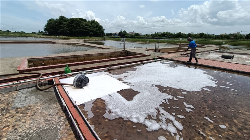 傳統上,夏季7、8、9月汛期,是沒辦法晒鹽的,鹽工只好放暑假,今年梅雨季連續3波;接著6月底到7月初,氣候不穩定,時晴時雨,三兩天就來場西北雨;距離上次5月24日收鹽,都快2個月了。