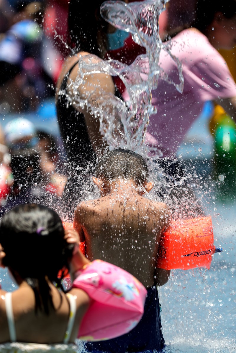 今、明兩天持續高溫,孩童戲水消暑。圖╱葉信菉