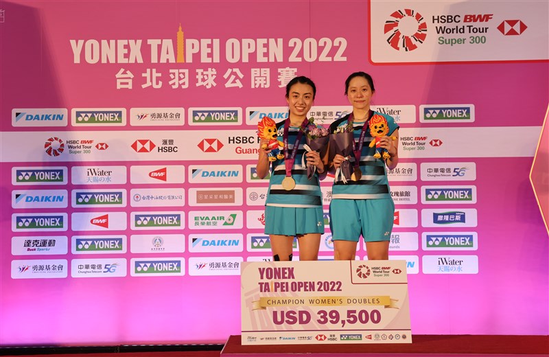 吳芷柔(左)與曾曉昕(右)拿到女雙冠軍後,吳芷柔個人在台北公開賽就收下混雙、女雙2項目冠軍。圖/官方提供