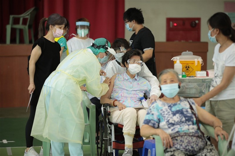 65歲以上民眾或55歲以上原住民,施打任何劑次都有500元衛教品和2劑快篩,政策確定實施到7月31日為止,不會再延長。圖/中央社