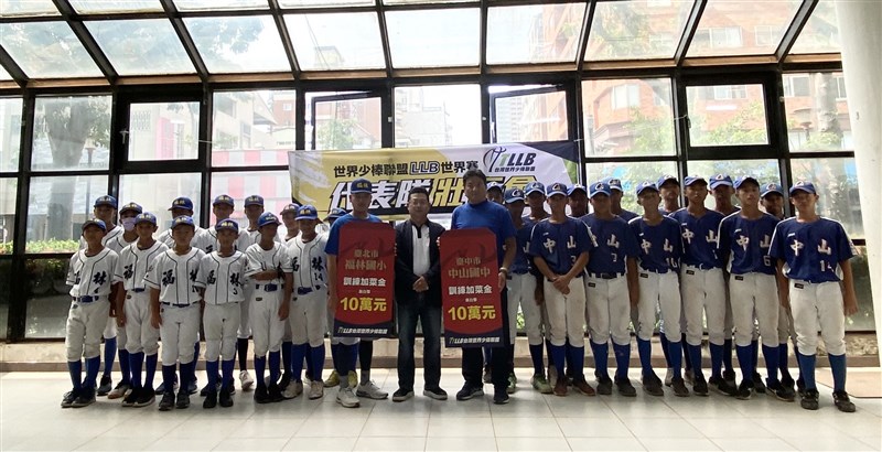 台灣世界少棒聯盟理事長黃英華致贈兩個代表隊訓練加菜金。圖/台灣世界少棒聯盟提供