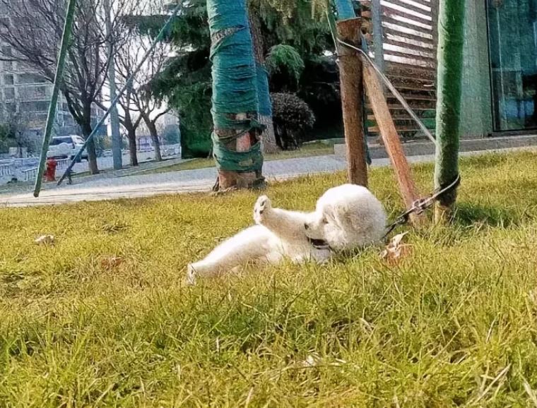 大陸網友「歲歲年年」貼出兩張照片,日前他帶著狗狗出外散步,但最近因為受到全球熱浪影響,各地都屢屢出現刷新歷史的高溫,太陽的威力完全不容小覷,走在路上沒多久就熱到要融化,自家狗狗躺在草皮上消暑,下一秒翻滾時被飼主捕捉到抬起前腳遮陽的一幕。